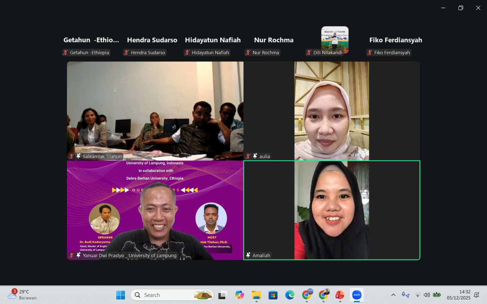 Kegiatan strategis yang mengusung tema “English for International Communication” ini diselenggarakan secara daring melalui platform Zoom Meeting pada Jumat, 5 Desember 2025.